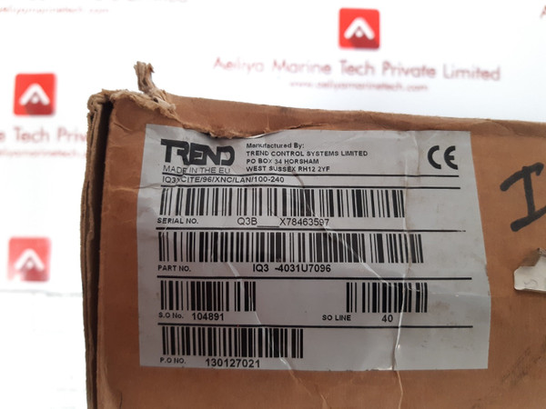 Trend iq3xcite/96/xnc/lan/100-240 controllermanufactured by trend control systems limitedpart. number: iq3-4031u7096iqe 3xcitexnc/laniq3xcite/96/xnc/lan/100-240s.o no.: 104891 so line: 40100-240v~voltage: 230 vacfrequency: 50/60 hzrating: 46 vamade in the euweight: 1.100 kg