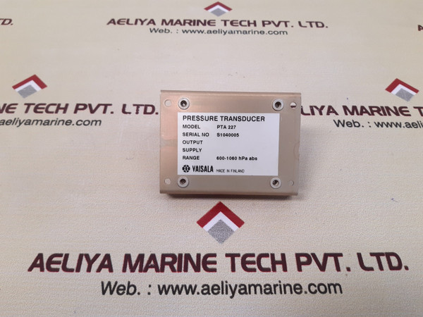 Vaisala pta227 pressure transducer s1040005vaisala type: pta227part: s1040005ppm25 b/apressure transducermodel: pta 227range: 600-1060 hpa absmade in finlandweight: 100 gm
