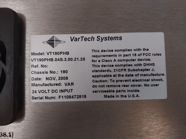 Vartech Systems Vt190Phb Touch Panel Monitor 24 Volt Dc Input