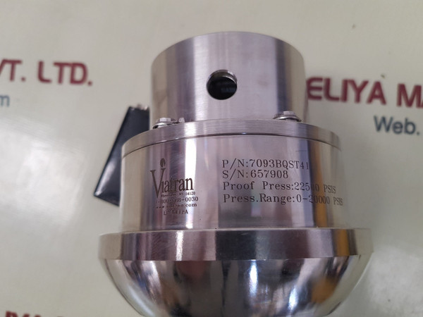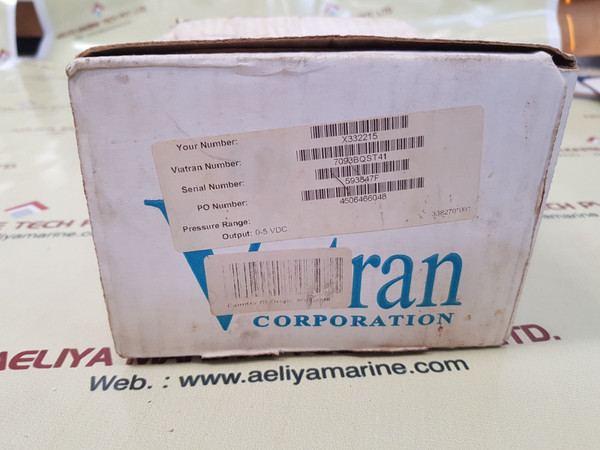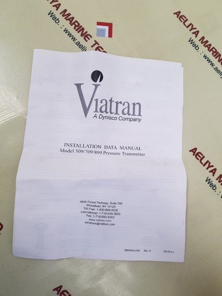Viatran 509/709/809 pressure transmitter 7093bqst41viatran a dynisco companyviatran corporationmodel 509/709/809pressure transmitter98manalx09 rev. binput: 9-30vdcoutput: 0-5vdcp/n: 7093bqst41proof press: 22500 psispress.range: 0-20000 psislx3322150000903912pressure range: output: 0-5 vdc338270*001made in malaysiaweight: 2.505 kg