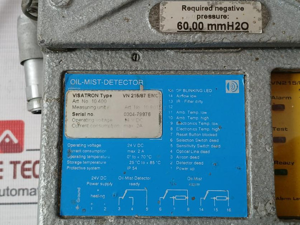 Visatron Vn 215/87 Emc Oil Mist Detector 24Vdc 2A Ip54 60,00 Mmh2O, 33K Ohm