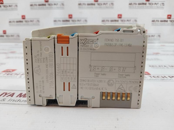 Wago 750-301 Fieldbus Coupler Profibus Dp Iecex Ptb 07.0064X 24V Dc