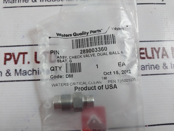 Waters 289003360 Check Valve Assy Dual Ball & Seat