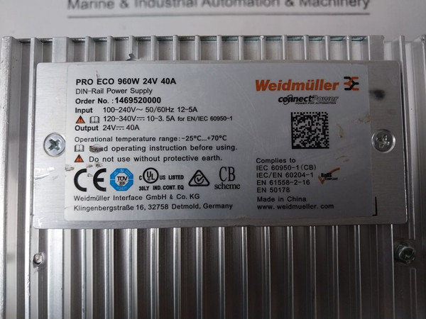 Weidmuller Pro Eco 960W 24V 40A Din-rail Power Supply 1469520000 100-240V
