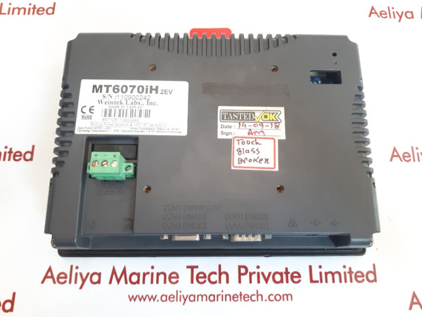 Weintek easyview mt6070ih 2ev touch screen panelweintek labs., inc.easyviewmt6070ih 2evinput power : 24vdc = 20%operating temperature : 0 ~ 50°cpower consumption : 250ma @ 24vdcoperation humidity : 10 -90 % rh (non - condensing)fuse 5×20867105110900242made in taiwanweight: 820 gm